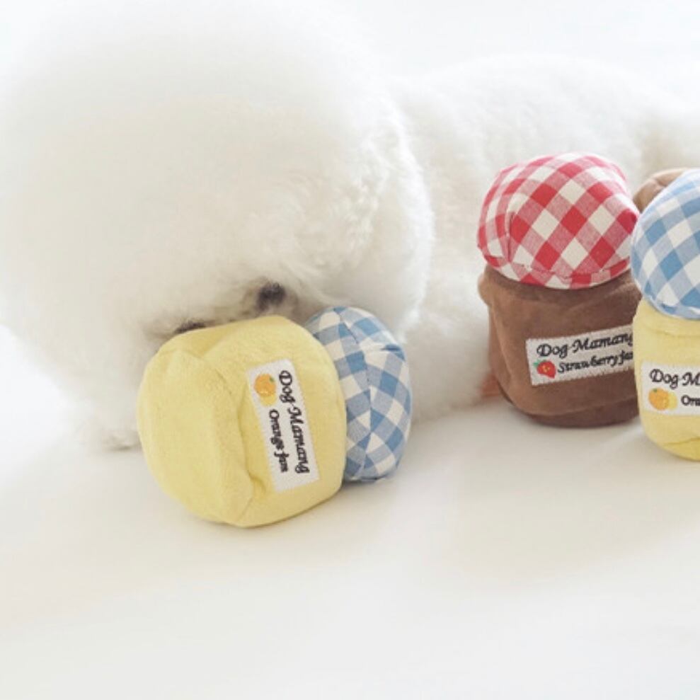 ストロベリージャムとオレンジジャムのノーズワークトイです。